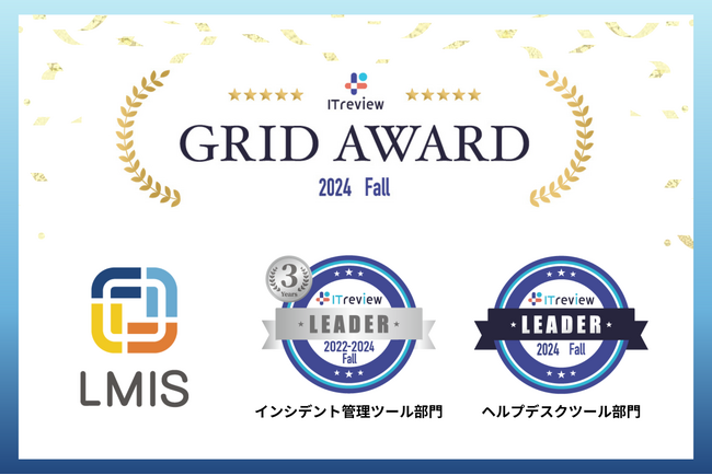 株式会社ユニリタ(本社:東京都港区、代表取締役 社長執行役員:北野裕行、東証スタンダード市場:3800以下 ユニリタ)が提供するサービスデスク機能を中心としたサービスマネジメントプラットフォーム「LMIS(エルミス)」は、アイティクラウド株式会社(本社:東京都港区、代表取締役社長:黒野源太)が主催するアワード「ITreview Grid Award 2024 Fall」の「インシデント管理ツール」部門と「ヘルプデスクツール」部門において、満足度・認知度ともに優れた製品であると評価され、最高位である「Leader」を受賞しました。