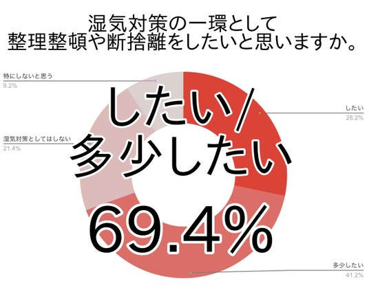 アンケートでは、湿気対策の一環として整理整頓や断捨離をしたいと思うか尋ねました。