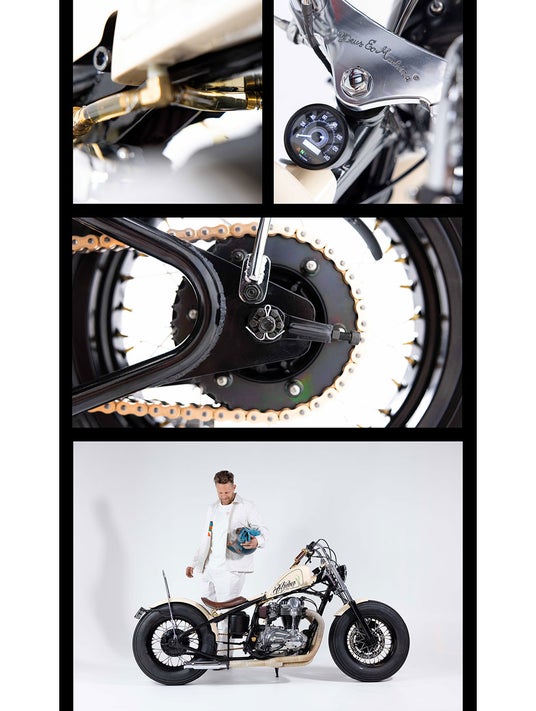 「Nut Kwaka/ナッツ・クワカ」と名付けられたこのカワサキW650ベースのカスタムマシンは、いまだ世界中にファンが存在する60~70年代のアメリカン・チョッパーと、いまや世界中に影響を与えまくっている日本のカスタムバイクシーンからインスピレーションを得て製作されています。車両を製作したDeusシドニーのチーフ・カスタムバイクビルダーのジェレミー・タガントは、2023年のヨコハマ・ホットロッド・カスタムショーに合わせて初来日し、そこで多くのビルダーや彼らが製作したバイクを見て/触れて/話し込んで、とにかく影響を受けまくっていたので、この「Nut Kwaka」は西洋と東洋を掛け合わせた、ジェレミーの思いで的なものかもしれません。