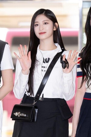 5月26日韓国金浦国際空港に、イソ(IVE)がMcQueenグラフィティプリントのT-shirt、トレッドスリックブーツ、バイカーミニジュエルドサッチェルにサングラスを合わせて着用し登場しました。