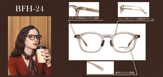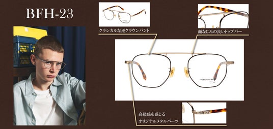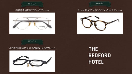 眼鏡市場は、トレンドのクラシックデザインを上質に仕上げたこだわりのオリジナルブランド「THE BEDFORD HOTEL(ザ・ベッドフォードホテル)」より、フレンチヴィンテージやブリティッシュスタイルから着想を得たデザインで、フレーム一つひとつの個性が光る新作を、眼鏡市場限定976店舗、および眼鏡市場オンラインショップにて販売開始しました。