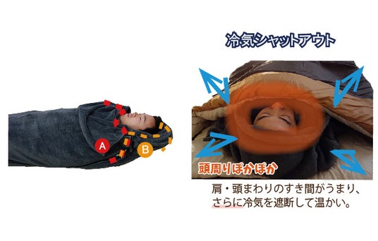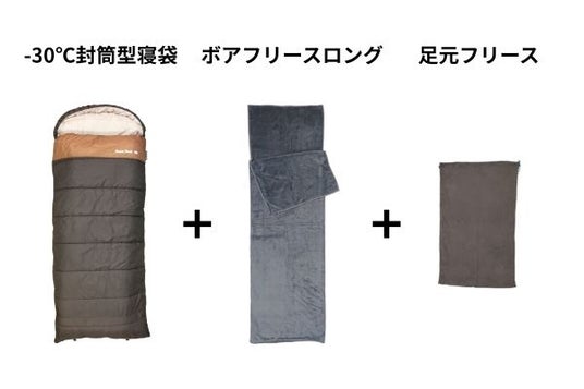 -30℃封筒型寝袋とくるむん ボアフリースロングを組み合わせた、保温拡張セット。