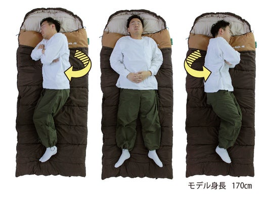 横向き寝やひざを曲げた姿勢など、個人差のある睡眠スタイルにも対応しやすく、長時間の使用でも姿勢を調整しやすい構造です。寒冷環境で衣類を重ね着している場合でも動きやすさを保ちやすく、睡眠の質を妨げにくい点もメリットです。
