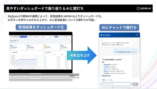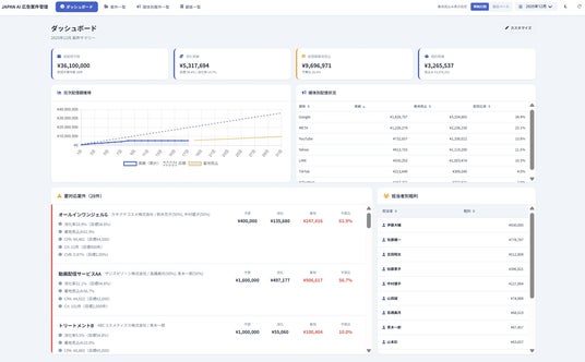 JAPAN AI株式会社(本社:東京都新宿区、代表取締役社長:工藤 智昭、以下JAPAN AI)は、広告代理店業務を包括的に支援する「JAPAN AI MARKETING」をアップデートしましたことをお知らせします。これにより、複数の顧客・案件・媒体にまたがるデータを管理し、リアルタイムに把握できる環境を構築します。