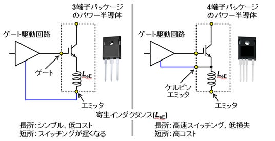図2 3端子パッケージと4端子パッケージのパワー半導体の長所、短所