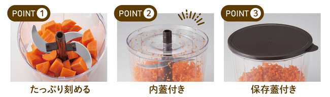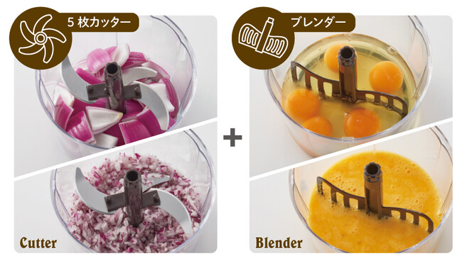 1台で「刻む」「泡立てる」「混ぜる」の調理が可能です。