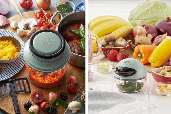 今回シリーズに新しく追加するのは、1.5Lの便利な大容量サイズ「Toffy ハンディチョッパー L」と“ちょこっと”使いに最適な手のひらサイズ「Toffy ハンディチョッパー ナノ」の2モデル。食材や容量、用途によって使い分ければ、毎日のお料理の幅がさらに広がります。
