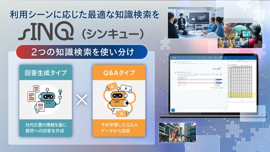 『sINQ』は、「回答生成タイプ」と「Q&Aタイプ」の2種類の知識検索機能を使い分けることで、様々な企業ニーズに対応します。
