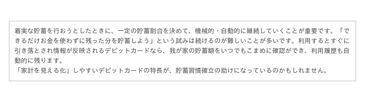 脱・現金、貯蓄習慣づくりにデビットカードの活用を