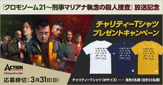 日本唯一の(*1)アクション海外ドラマ専門チャンネル「アクションチャンネル」(旧AXN)(AXN株式会社、本社:東京都渋谷区、代表取締役社長 大園天樹)は、ダウン症のある青年が容疑者となった殺人事件を追う刑事による執念の捜査を描いた、南米チリの最新クライムドラマ「クロモソーム21~刑事マリアナ執念の殺人捜査」を、『世界ダウン症の日(3/21)』にちなみ、3月に独占日本初放送(*2)します。また、今回の放送を記念して、世界ダウン症の日 ダウン症理解啓発チャリティーTシャツのプレゼントキャンペーンも実施します。