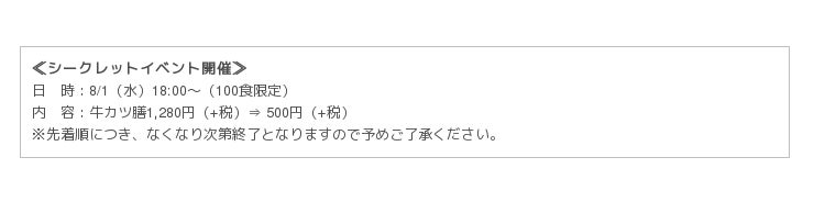 「京都勝牛 三鷹駅南口店」がオープンに先駆け8/1(水)シークレットイベントを開催!