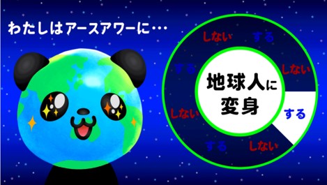GIFとはファイルのフォーマットのひとつで、動画や簡易なアニメーションを表示することができます。EARTH HOURのオリジナルGIFルーレットは、ルーレットとパンダの表情のアニメーションがくるくる回り、Twitter上でタップすることでルーレットを止めて遊ぶことができます。EARTH HOUR をキッカケに、地球環境の課題を「自分事」として考え、環境保全のために行動する真の地球人に変身しよう、という想いが込められています。2つのハッシュタグ #変身しよう地球人 #アースアワー2022 と共にシェアすると、その投稿がそのまま、EARTH HOUR 2022 への参加宣言となります。