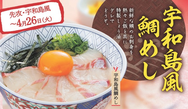 先攻(4月6日~4月26日)は、真鯛のお刺身を熱々のごはんに盛り、卵黄を絡めて特製しょう油ダレで召し上がる「宇和島風鯛めし」です。