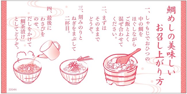 今回は、この2種類の鯛めしを和食さと風にアレンジしてご提供しています。