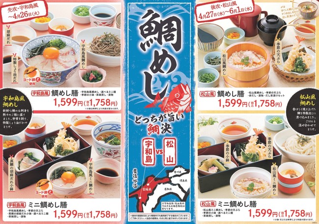 国内207店舗を展開する「和食さと」では、本日4月6日(水)より期間限定の対決イベント、「鯛めし~どっちが旨い鯛決~」を開催します。