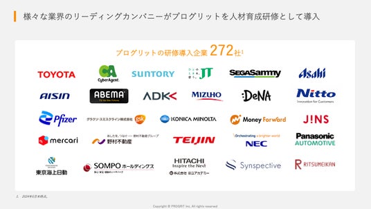 ■ 法人向け英語研修サービス「PROGRIT FOR ENTERPRISE」、のべ272社が導入