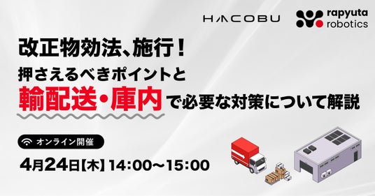 物流向けロボティクスソリューションを提供するラピュタロボティクス株式会社(東京都江東区、代表取締役 CEO:モーハナラージャー・ガジャン、以下、ラピュタロボティクス)は、4月24日(木)にデータの力で物流課題を解決する株式会社Hacobu(東京都港区 代表取締役社長CEO 佐々木 太郎、以下、Hacobu)との共催で、2025年4月1日に施行となった改正物流関連2法のうち、物流効率化法について、輸配送・庫内作業における対策を解説するウェビナーを実施いたします。