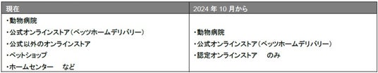 このような課題を背景に導入される今回の新流通制度では、動物病院による診療とペットオーナーの購入を100%紐づけるため、ロイヤルカナンの食事療法食は動物病院および公式・認定オンラインストアのみで販売されることになり、動物病院以外の店舗や認定を受けていないオンラインストアでの取り扱いを順次終了します。