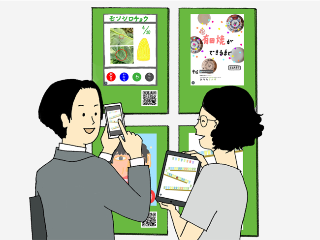 ブースでは、実際の先生や生徒の作品をご覧いただけます。創造の幅の広さや授業活用イメージを深めていただける内容になっています。お手持ちのスマートフォンにダウンロードいただき作品を動かしていただくことも可能です。