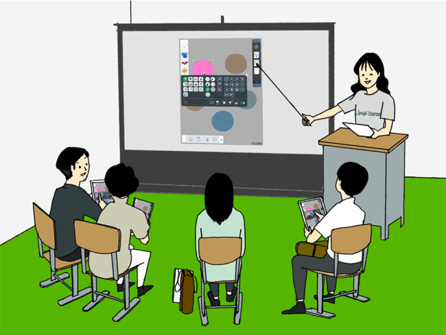 「Springin’ Classroom」は、ICT端末を「プログラミングができるスケッチブック」に変える、教育向けアプリです。使いやすい描画ツールや音声エディタと、文字を使わない直感的なプログラミングを備えているので、様々な授業でICT端末を活用して絵を描いたり、写真を撮影したり、音を録音・編集したり、動きをつけたり、といった創造・表現が可能となります。指先のタップだけですべての操作が行えるので、ICT端末の操作に不慣れな低学年からでも使い始められます。さらにクラウド機能を利用して、制作物をオンラインで提出したり、生徒間で共有・共創したりもできます。指導者向けに用意された専用ダッシュボードでは、端末の管理やマニュアル・教材の入手もでき、サポートなども充実しているので、プログラミング未経験者でも安心して導入いただけます。