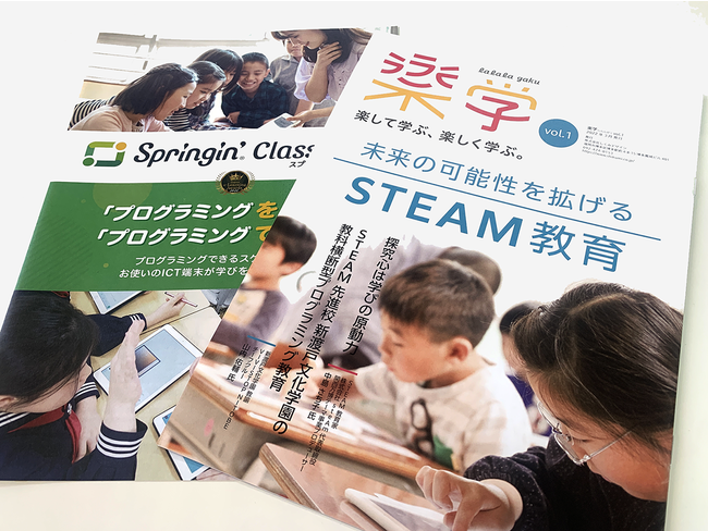 小中学校向け学校向けスタートプラン(端末台数無制限でお試し可能)にお申し込みいただくとSpringin' Classroom授業マニュアル(3種)やSTEAM教育のヒントが詰まった「つくるを楽しむレシピ」をご覧いただけます。