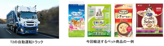 ユニ・チャーム株式会社(代表取締役 社長執行役員:高原 豪久)の生産子会社であるユニ・チャームプロダクツ株式会社、株式会社キユーソー流通システム(代表取締役社長:富田 仁一、以下「KRS」)および株式会社T2(代表取締役CEO:熊部 雅友、以下「T2」)の3社は、ユニ・チャームのペット商品を対象とした自動運転トラックによる幹線輸送の実証実験を、2026年4月2日より関東-関西間の高速道路の一部区間で開始したことをお知らせします。