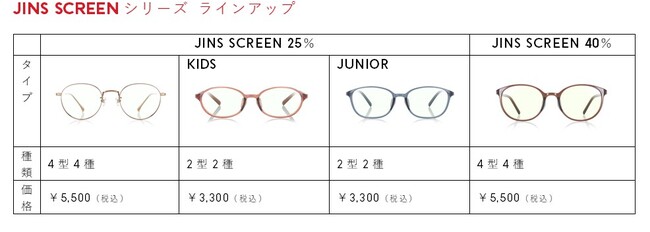 【価 格】JINS SCREEN 25%、40%:各¥5,500(税込)