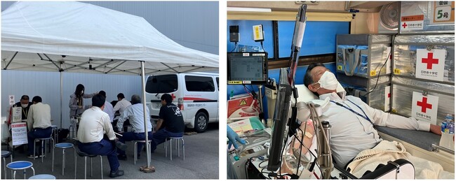 弊社では年2回、定期的に献血を行っており、各日55名以上の協力を目標に実施し、今回の献血では合計115名(23日に62名、26日に53名)の従業員の協力がありました。