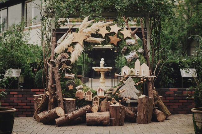 ★昼は自然素材と赤いリボンで演出された「ボタニカルなクリスマス空間」に