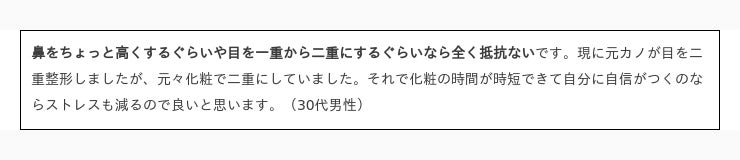 ■「目、鼻、唇などのプチ整形が許せる」と回答した男性の意見
