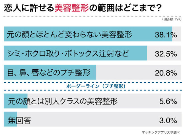 ただし、恋人に許せる範囲は「目、鼻、唇などのプチ整形」までか