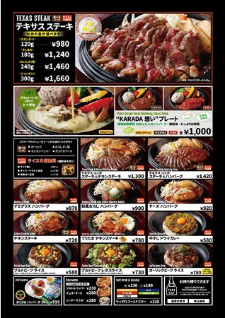 株式会社ジロープランニングサービス(渋谷区 代表取締役社長 藤原英樹)が運営するステーキ専門店「テキサスキングステーキ イオンモール成田店」では、新年1月1日(土)より成田店限定メニュー「“KARADA想い”プレート」を100円OFFでご提供します。