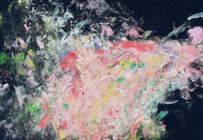 身体を動かすこと、楽しいことが大好き。テーマに沿った景色や音楽を身体で感じてイメージしながら楽しく描いています。絵の具を付けた両手を大きく動かして、力強くキャンバスに叩くように描きますが、優しく暖かいタッチの出来上がりになります。出来上がった自分の絵を見てニッコリ微笑む表情はとても印象的です。