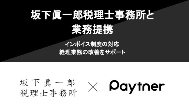 坂下眞一郎税理士事務所との業務提携により、「ペイトナー 請求書」のサービス提供を軸に中小企業のインボイス制度の対応支援、経理の業務改善、デジタル化の推進を強化してまいります。