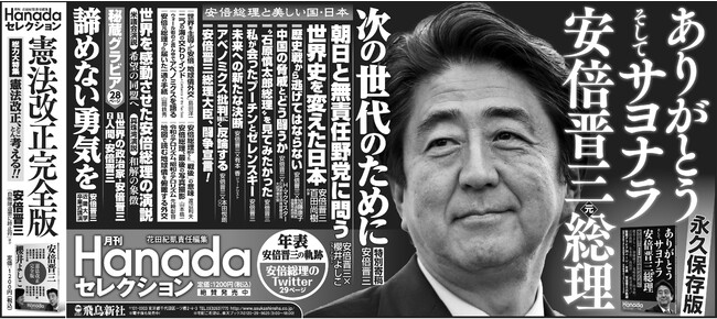 22年8月2日に発売された月刊『Hanada』セレクション「ありがとう そしてサヨナラ 安倍晋三元総理」(飛鳥新社)が売れ続け8万部突破!全国から感動、感謝の声多数!