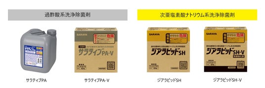 サラヤは透析装置専用洗浄剤として、過酢酸系洗浄除菌剤「サラティブ」と次亜塩素酸ナトリウム系洗浄除菌剤「ジアラピッド」を展開しています。