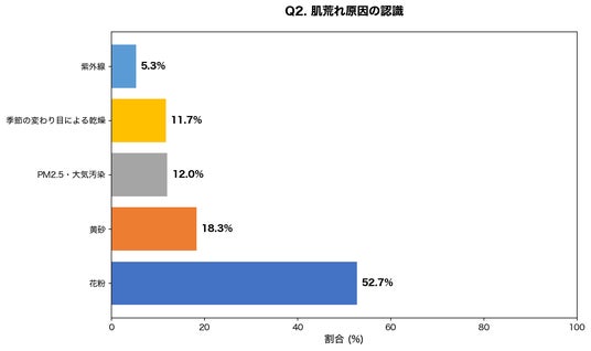 設問:春の肌荒れの原因として最も影響が大きいと感じるものは何ですか?
