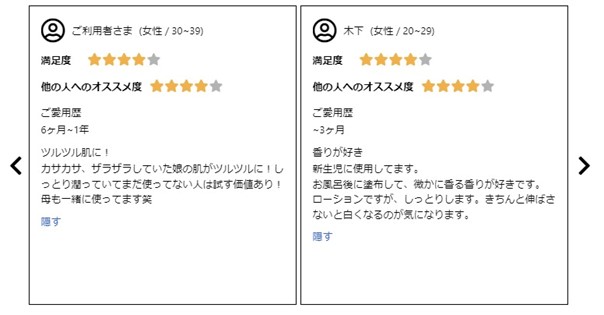 先行活用事例:ベビースキンケアブランド「ALOBABY」、公式通販サイトで「愛用歴」「オススメ度」を訴求