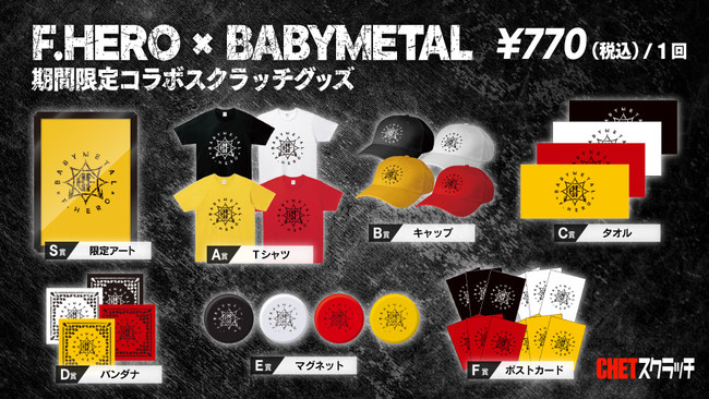 「クリエイティビティ×テクノロジー」の力でIP開発を行う株式会社CHET Group(本社:東京都品川区 代表取締役CEO:小池祐輔)が展開するレーベル「CHET Asia」は、2022年5月13日(火)から、 F.HERO×BABYMETALオリジナルロゴの限定コラボ商品を「CHETスクラッチ」にて日本限定で販売いたします。