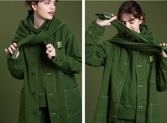 苔を思わせる深いグリーンが冬らしい雰囲気を演出。ベーシックなカラーリングのアイテムともすんなり馴染み、スタリングに組み込みやすいカラー。