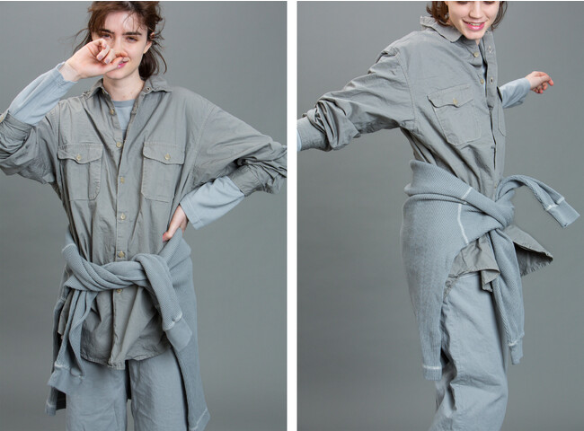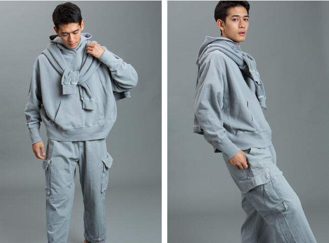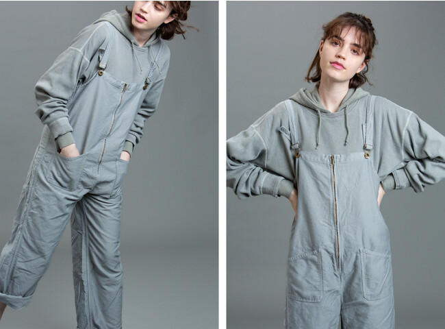 使い勝手が良くカジュアルウェアの定番でもあるグレーですが、ボトムスやシャツ、オーバーオールなどのグレーはありそうでなかった新鮮な組み合わせ。合わせるものを選ばないカラーで手軽にスタイリングに取り入れられるのも嬉しいポイント。