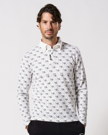 インパクトのあるロゴ入りテキスタイルを使用したロングスリーブポロシャツ。総柄プリントで斬新な仕上がりに。 ボタンダウン仕様の衿が全体感なイメージに締まり感を与える。