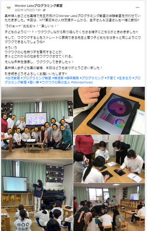 NTT東日本とWonder Forestは、子ども達が希望を感じる横須賀の未来創りを共に行っていくとともに、今回の案件で支援を行った社員が各自のライフワークにおいて、副業・ボランティア活動等の多様な形で、継続実施できるよう環境整備・サポートを検討・実施していきます。