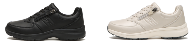 伸縮性のあるニット素材を使用したアッパーで着脱がしやすく、いろんな足幅のお客様に対応できるつくりになっております。また、軽量で屈曲性やクッション性に優れたソールの使用で長時間歩行にもピッタリな1足となっております。