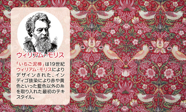 時代を超えて愛されるウィリアム・モリスの「いちご泥棒」を全面にあしらったデザイン