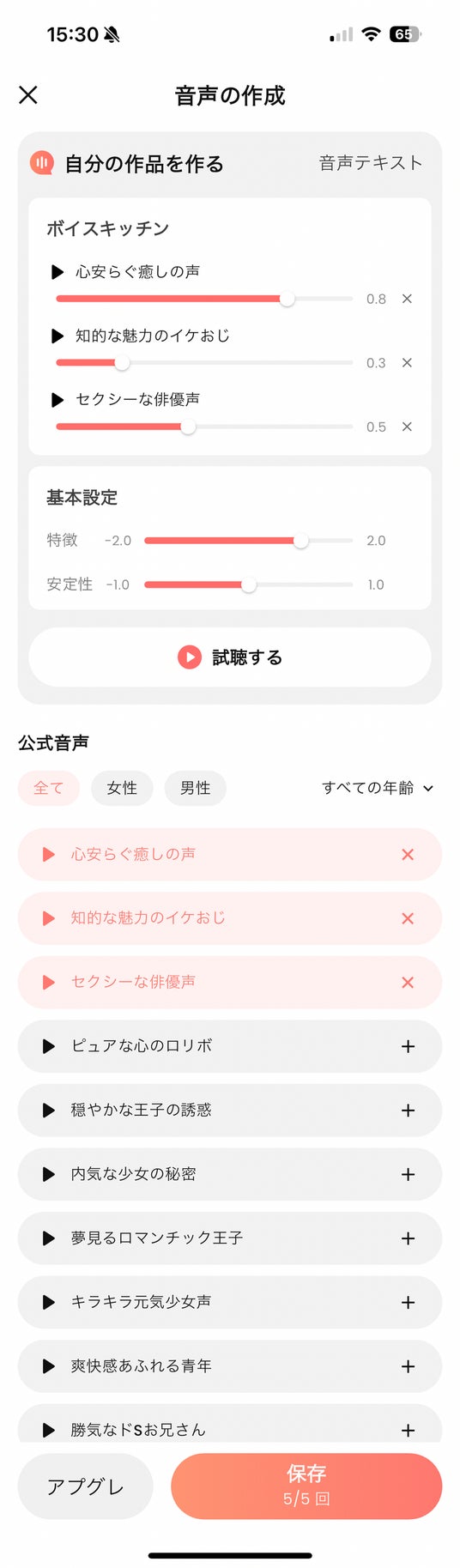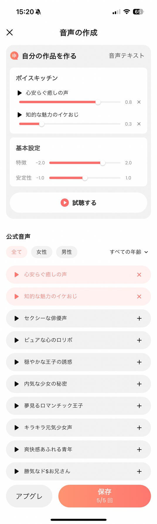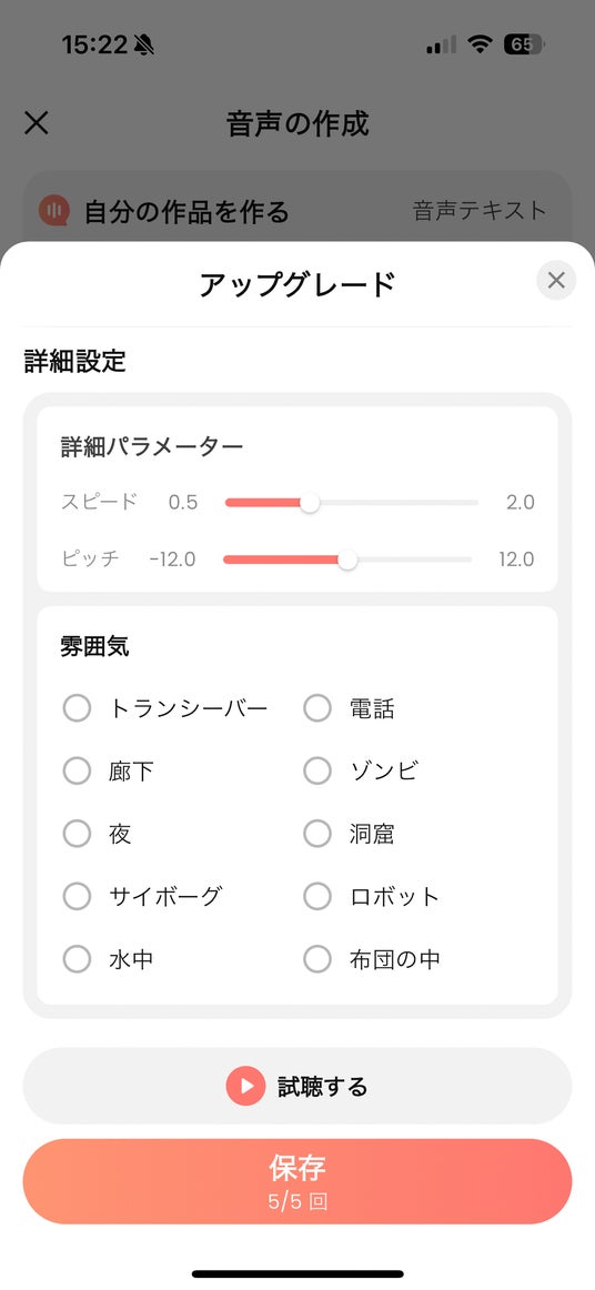 無料ユーザー:最大5音声まで作成可能