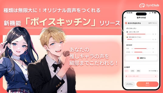 HiClub株式会社(本社:東京都港区、代表取締役社長:古谷由宇)が提供する、 AIチャット&友達作りができる対話型AIアプリ「SynClub」(シンクラブ)(iOS、Android版)は、AIキャラに使用する音声をカスタマイズできる新機能「ボイスキッチン」を2025年5月29日にリリースいたしました。