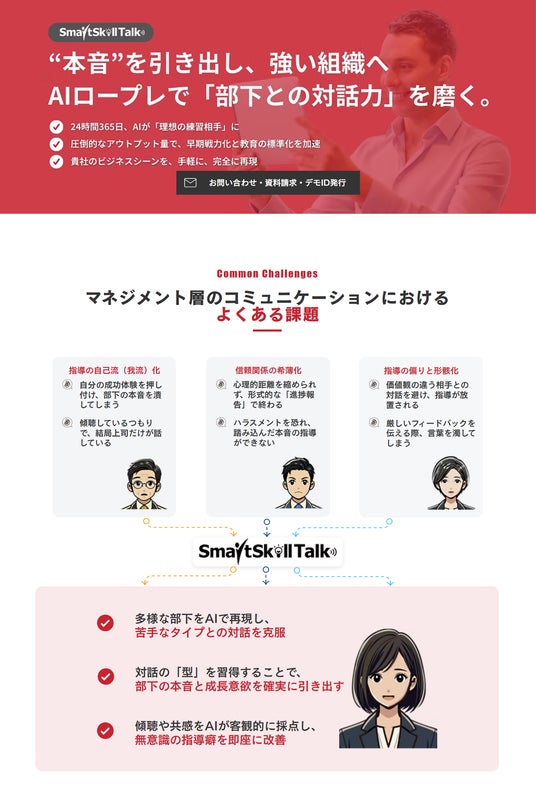 株式会社レビックグローバル(本社:東京都港区、代表取締役社長:柏木 理、以下「レビックグローバル」)は、AIを活用した双方向ロープレツール「SmartSkill Talk(スマートスキル トーク)」の公式サイトをリニューアルいたしました。