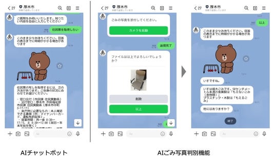 ホームページ情報をもとに自動応答し、写真を画像解析し、ごみの種別や捨て方も案内。職員負担の軽減にも寄与。