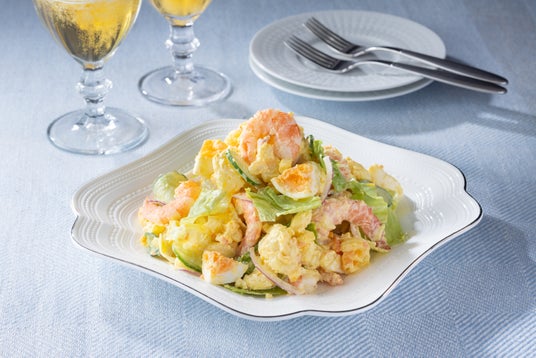 シャキシャキ野菜と海老を、半熟たまごと卵黄のコクと酸味を活かしたソースでまとめたサラダです。お好みのパンを添えるだけで、いつもの食卓がパッと華やぐ、満足感たっぷりのメインサラダです。
